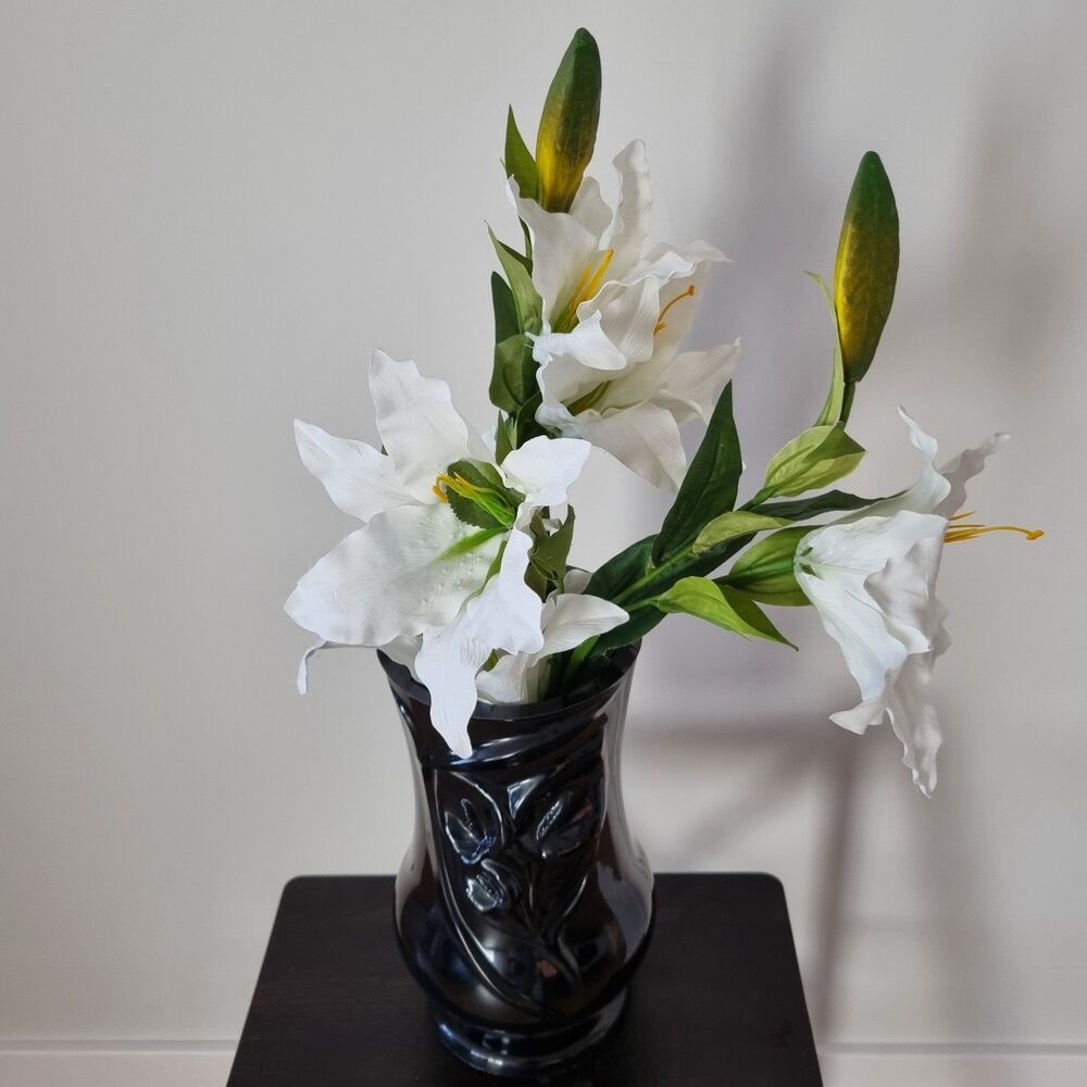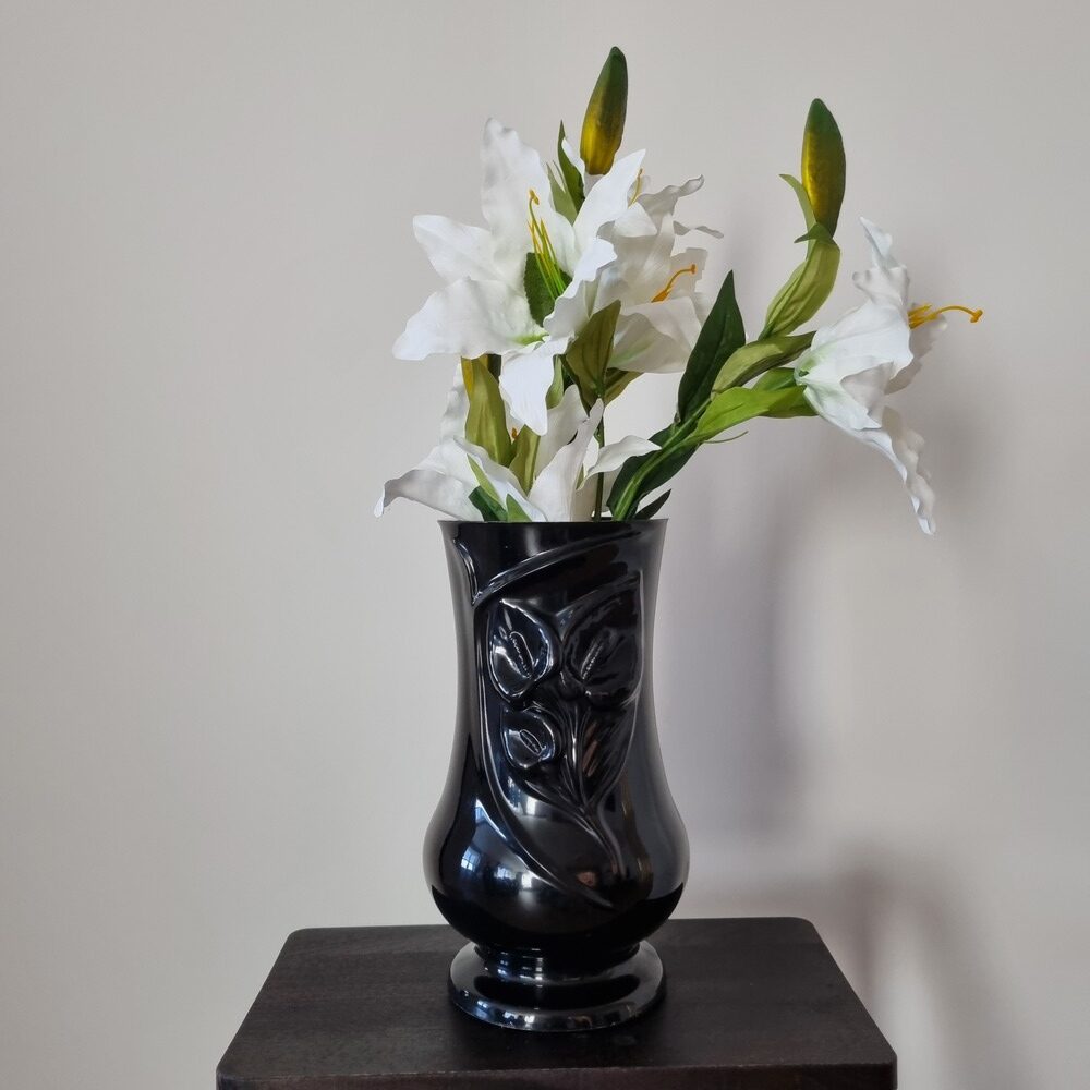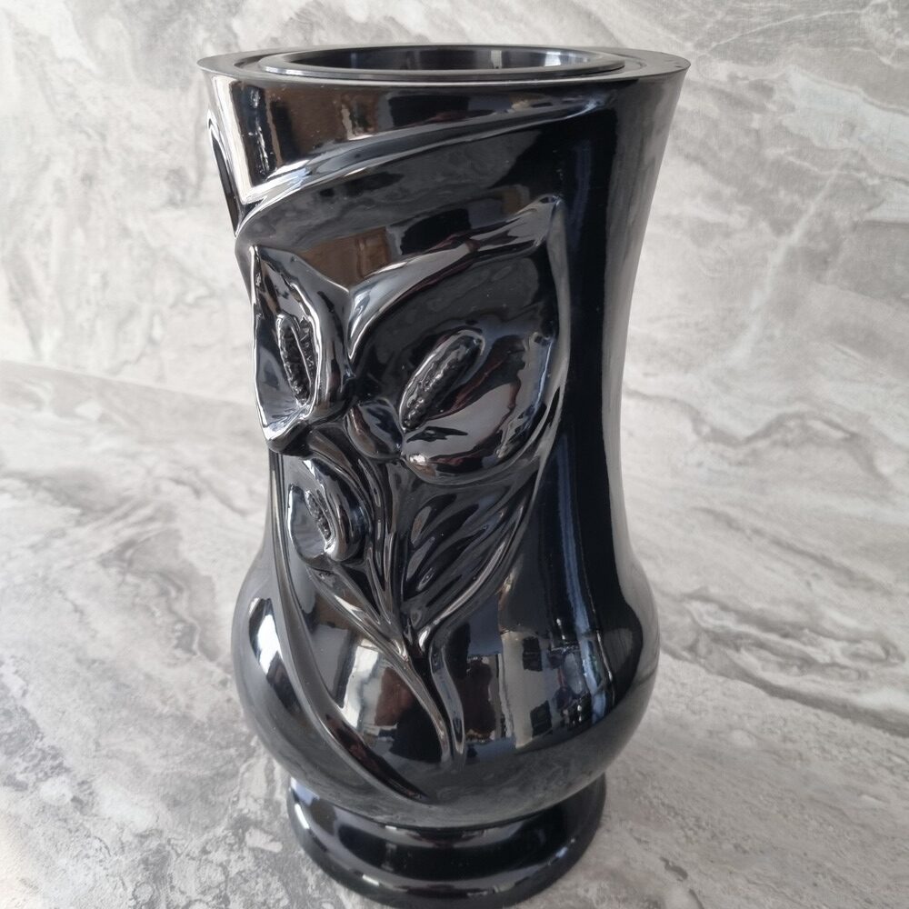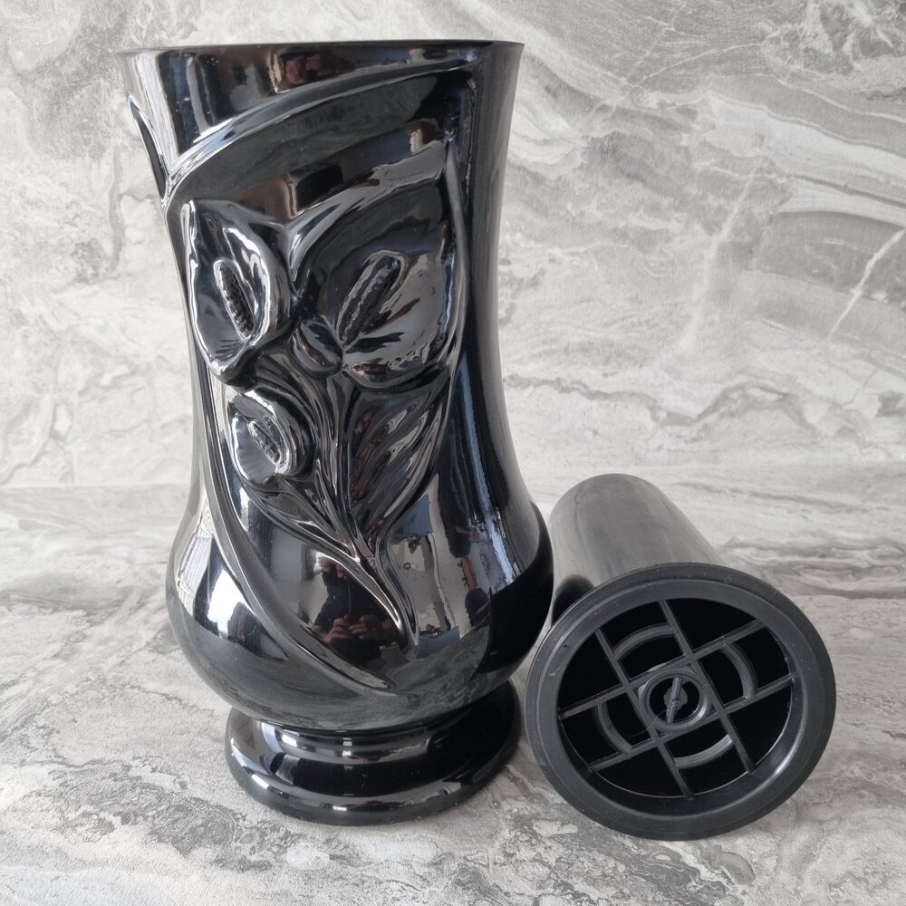 Aukštos kokybės, akmens masės vaza „Kalija” kapavietei, tinkama lauko sąlygoms, atspari šalčiui, sniegui ir vandeniui. Juodos glazūruotos spalvos. Svoris yra apie 5 kg. Yra pakankamai sunki, kad kapų vazos nupūstų vėjas. Vaza turi plastikinį įdėklą, su grotelėmis gėlėms. Vazoje yra drenažinė anga vandeniui išbėgti, tai leidžia išvengti vazos skilimo žiemą.
