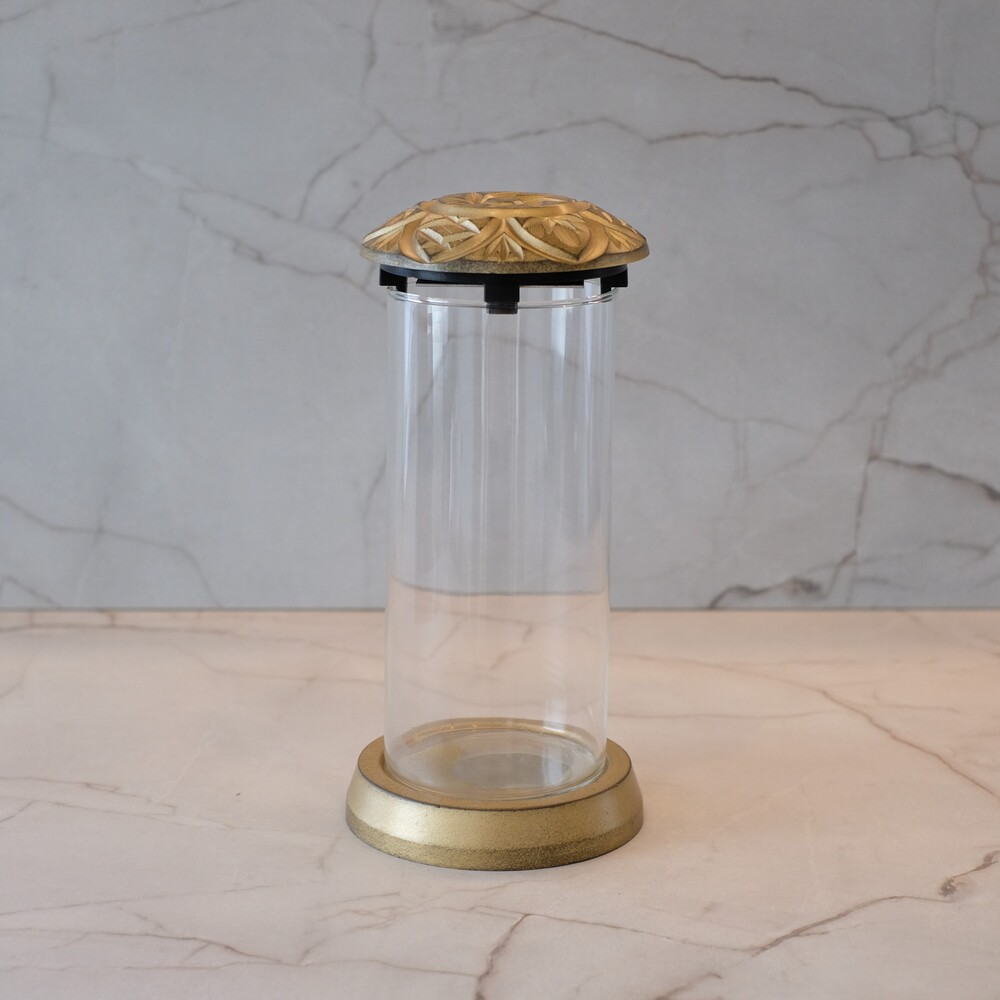 Aukštos kokybės, akmens masės žvakidė „Gėlės” cilindro formos, nuimamu viršumi. tinkama lauko sąlygoms, atspari šalčiui, sniegui ir vandeniui. Auksinės spalvos. Svoris yra apie 1 kg. Yra pakankamai sunki, kad žvakidės nenupūstų vėjas. Žvakidė turi nukeliamą viršų, tai leidžia patogiai ir saugiai įdėtį žvakę.